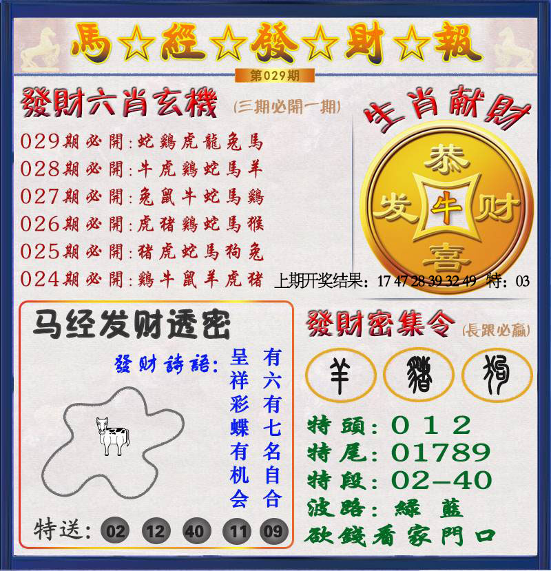 029期:澳门六合宝典彩圖信封【发财神报】每期自动更新