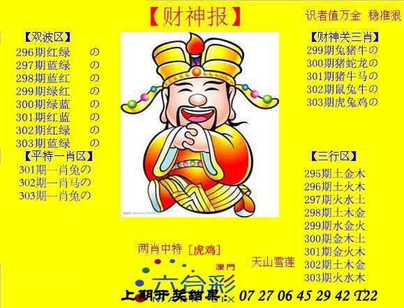 303期: 澳门六合宝典彩圖信封【平财神报】每期自动更新