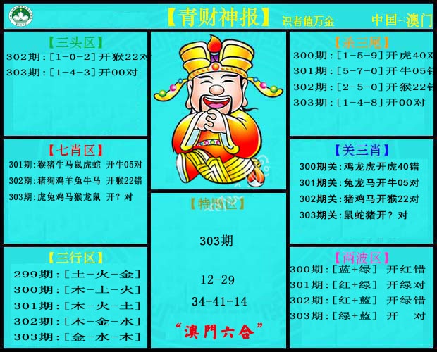 303期: 澳门六合宝典彩圖信封【蓝财神报】每期自动更新